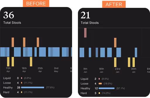 Get a clear record of frequency, consistency, and timing, so you can connect meals, stress, and routines to how you feel and make small changes that stick.