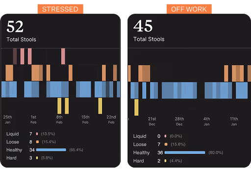 She went home for the holidays and the data shifted visibly — fewer, more regular stools, better consistency. It wasn't her diet. It was her job.
