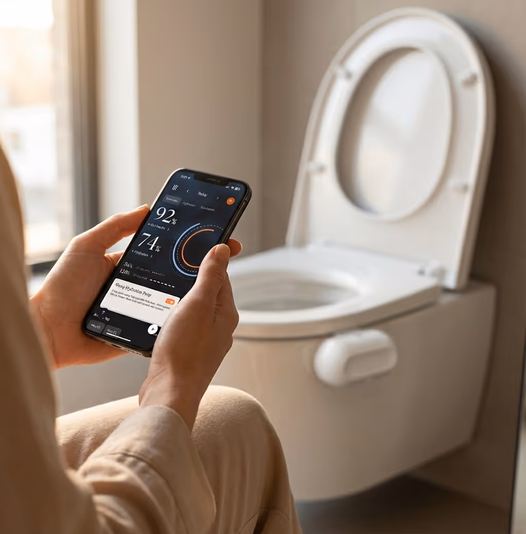 Advanced optical and acoustic sensors capture bathroom biosignals safely and privately. AI transforms raw data into personalized health insights. All data is securely encrypted and protected.