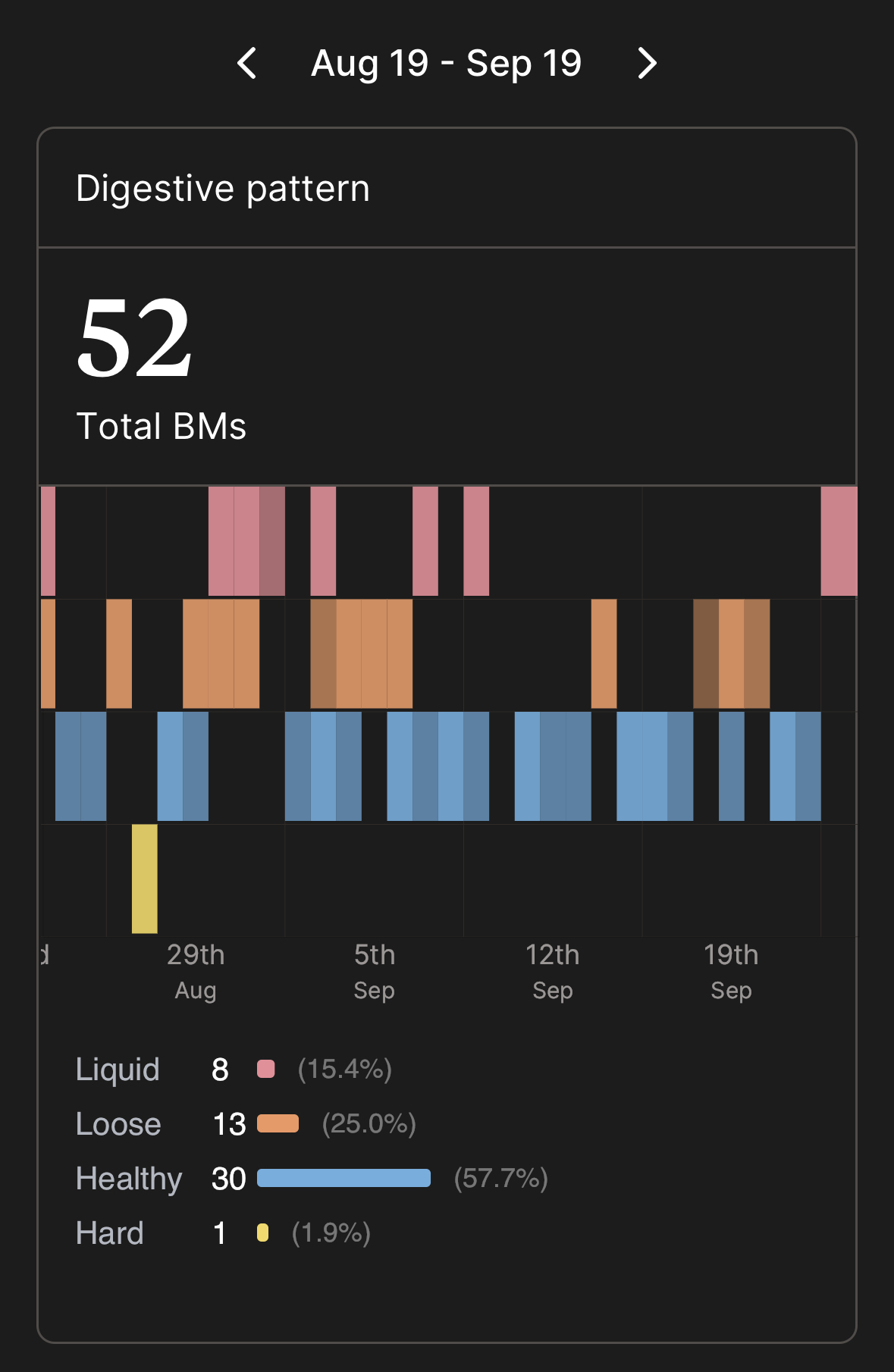 We’ve already seen the gut-brain axis in our own Throne data. Pictured below is a relatively low-stress month, note the consistent healthy poops: