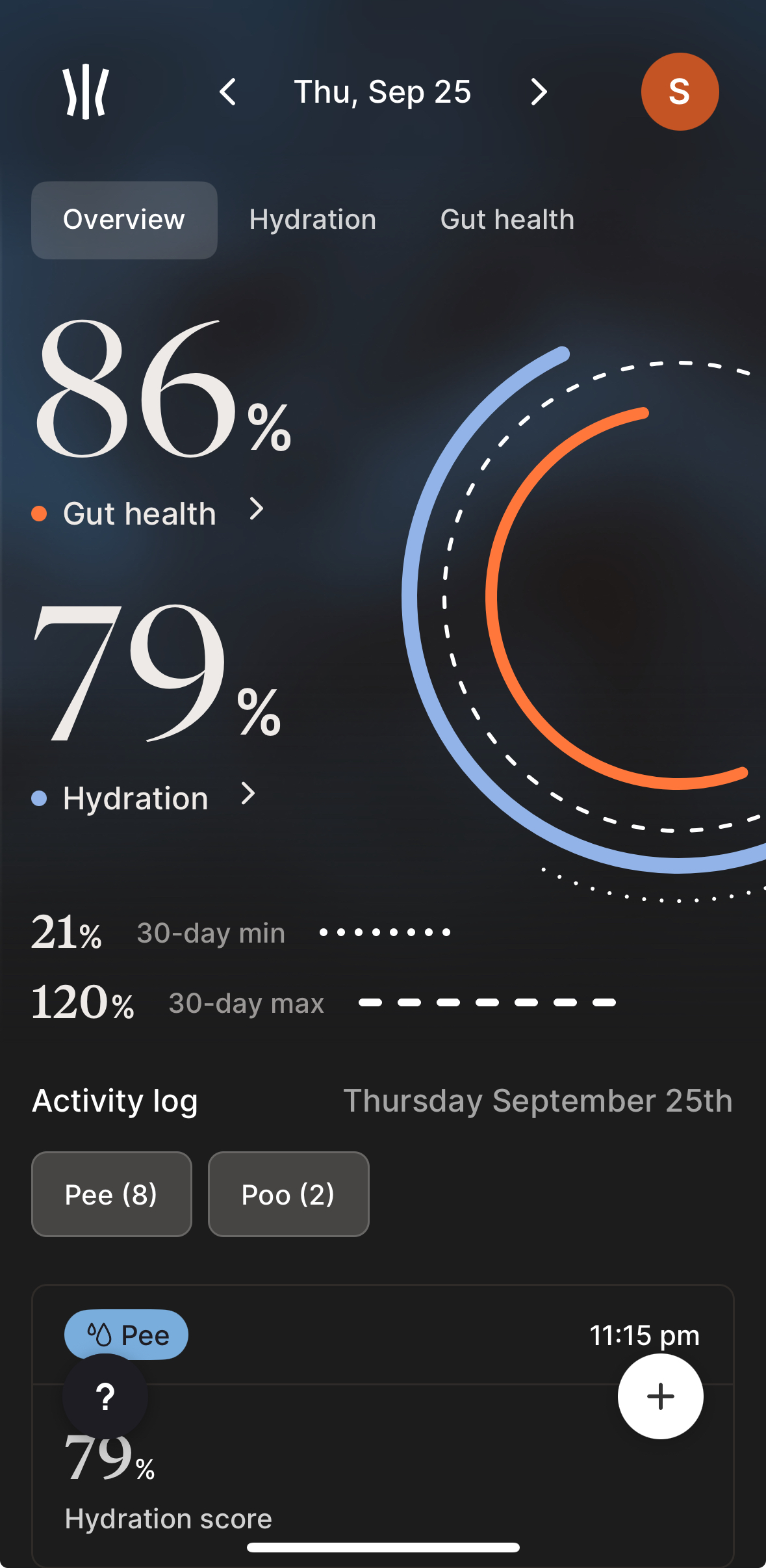 This gap matters. Your gut is the engine of your wellbeing, affecting everything from mood and metabolism to long-term disease risk. Hydration impacts cognition, energy, digestion, and even drives fall risk in older adults. Compared to the level of daily insight we have into the other corners of our body, the state of the art for gut health and hydration is back in the dark ages.