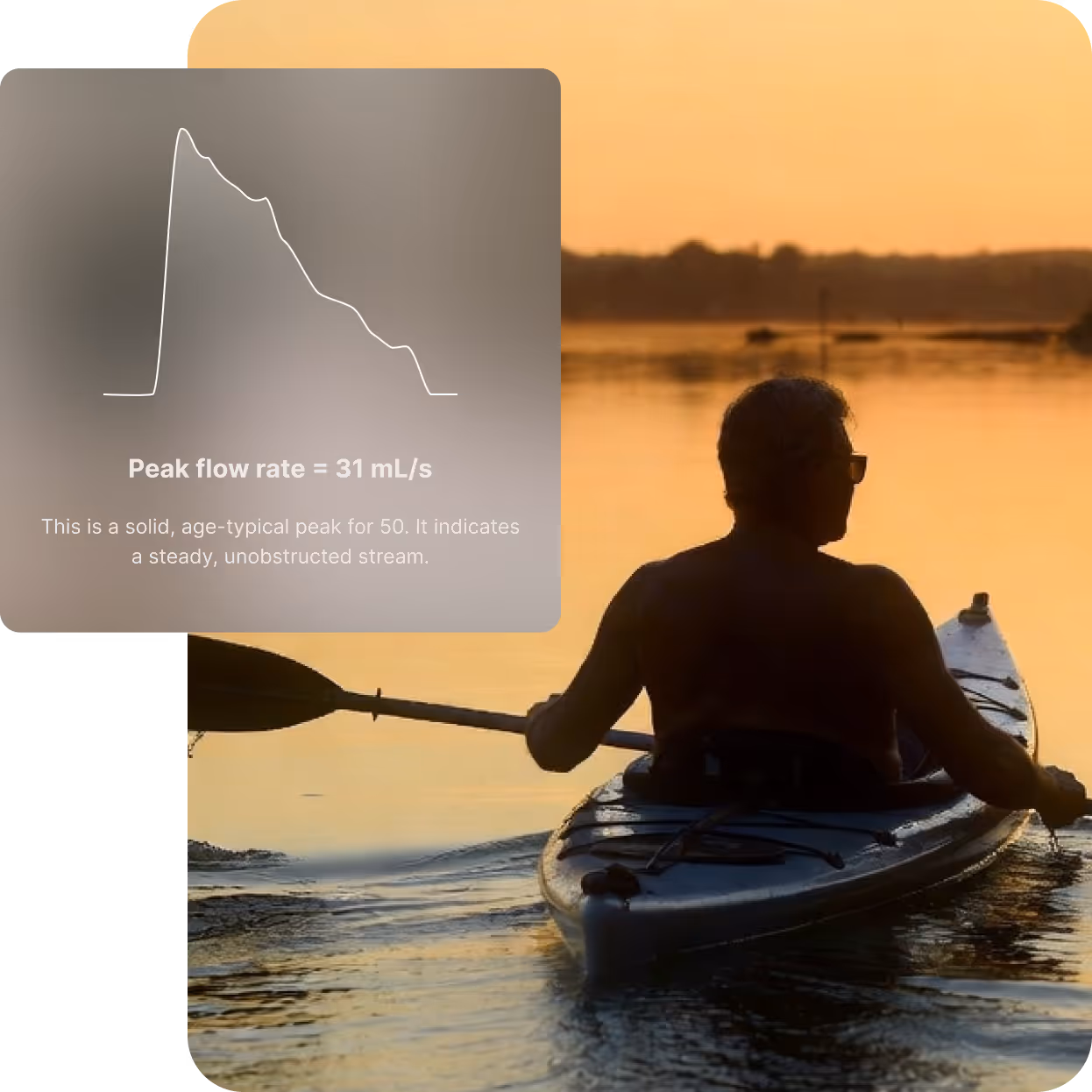 Your peak speed during the void. A key signal used to flag shifts in bladder or prostate function.